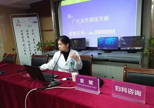 袁主任结合多年的临床实践及典型病例,根据现代女性常见病及多发病的特点,针对性的讲授了女性常见病(阴道炎、月经不调、宫颈疾病、盆腔炎、多囊卵巢综合征、子宫肌瘤、卵巢疾病、不孕症)的临床症状、疾病危害、预防治疗;盆底疾病的危害及康复措施;、乳腺常见疾病的症状与检查治疗;艾滋病的传播途径及预防;女性健康日常保健;女性健康体检的重要性等等。讲座图文并茂、生动形象,街道居民受益匪浅。